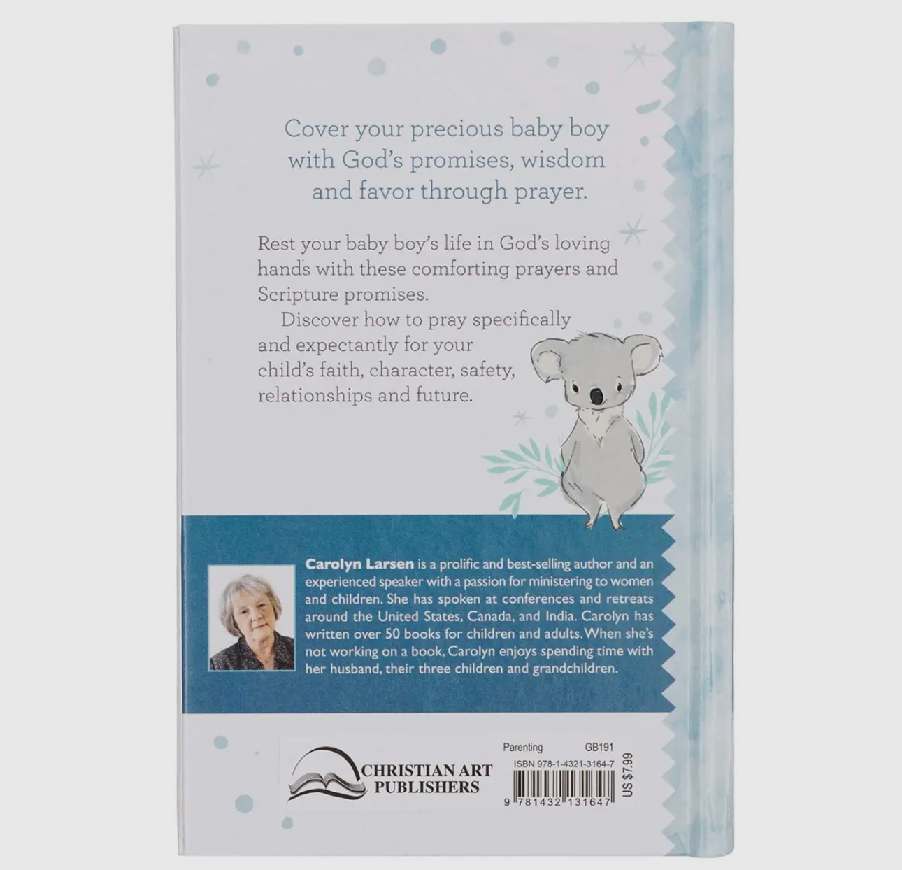 Prayers for my Baby Boy is a collection of more than 40 beautiful and comforting prayers to guide mothers as they rest their precious baby boy's life in the loving hands of God.Prayers for My Baby Boy features prayers for moms to pray over their baby boys. The prayers and Scripture promises in Prayers for My Baby Boy will guide moms in covering their baby boy with God's faithful promises, protection, and blessing.